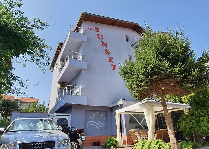 Hotel je umístěný ve vzdálenosti 5-minutové chůze od centra města. 50 metrů od hotelu je pláž. Díky svému umístění 65 km od letiště Burgas je zajištěn rychlý přístup do Hotel Къща За Гости Sunset.